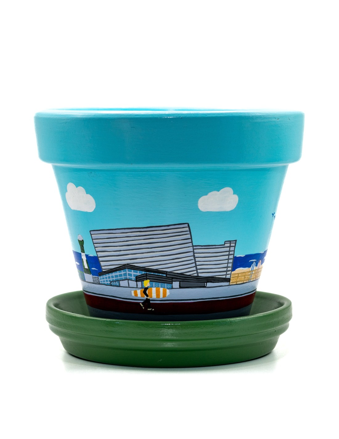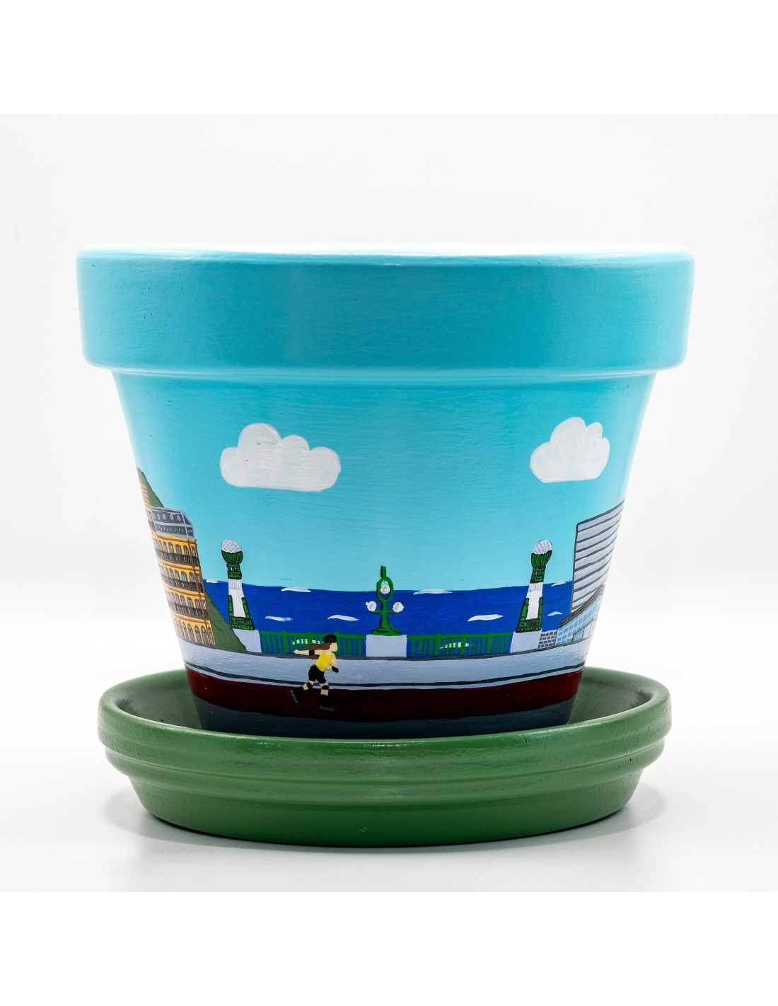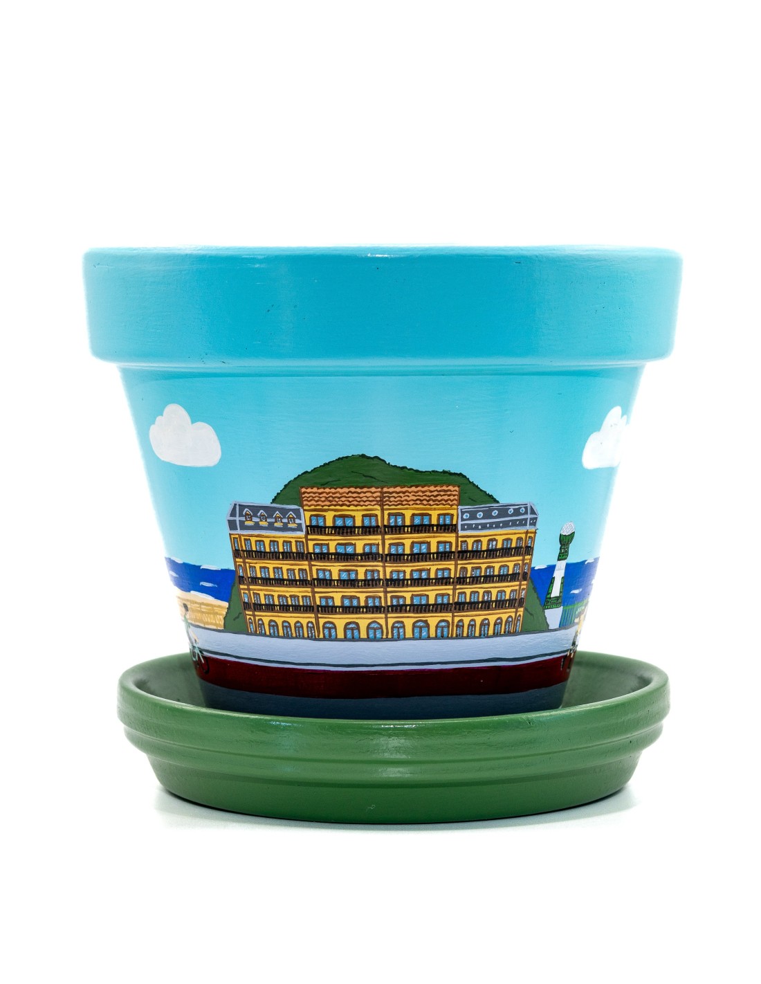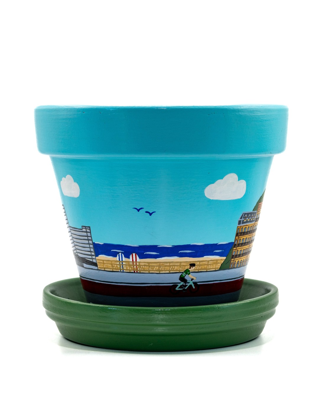 Este macetoño de la colección Donosti está pintado a mano y mide 13,5 cm de diámetro en su parte más ancha.